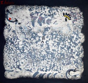 Témpera/óleo sobre tela, por Roosevelt Cruz, dimensiones 71 x 66 cmts.